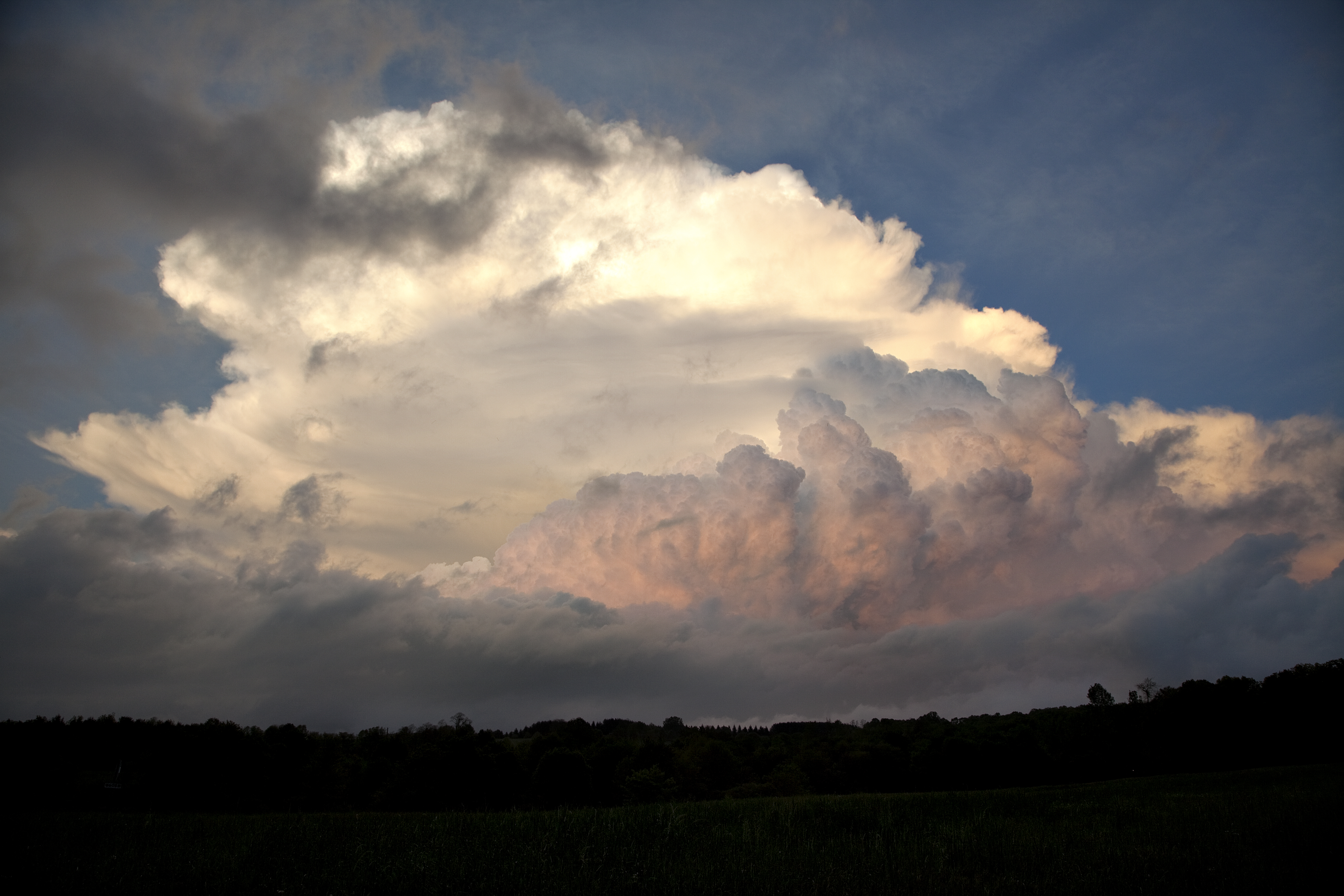 My first post about an adventure! I ended up chasing a storm that popped up near Galax Va early this week (5/20/13). I started off by hitting the blue ridge parkway and set off to find a foreground. I often forget how hard it is to find a foreground when you need one…but I drove along and kept looking until I found a couple of interesting spots. The first had some cows and so I tried to have a cow in front of the storm. I had to park in the road for this shot so I made it quick!