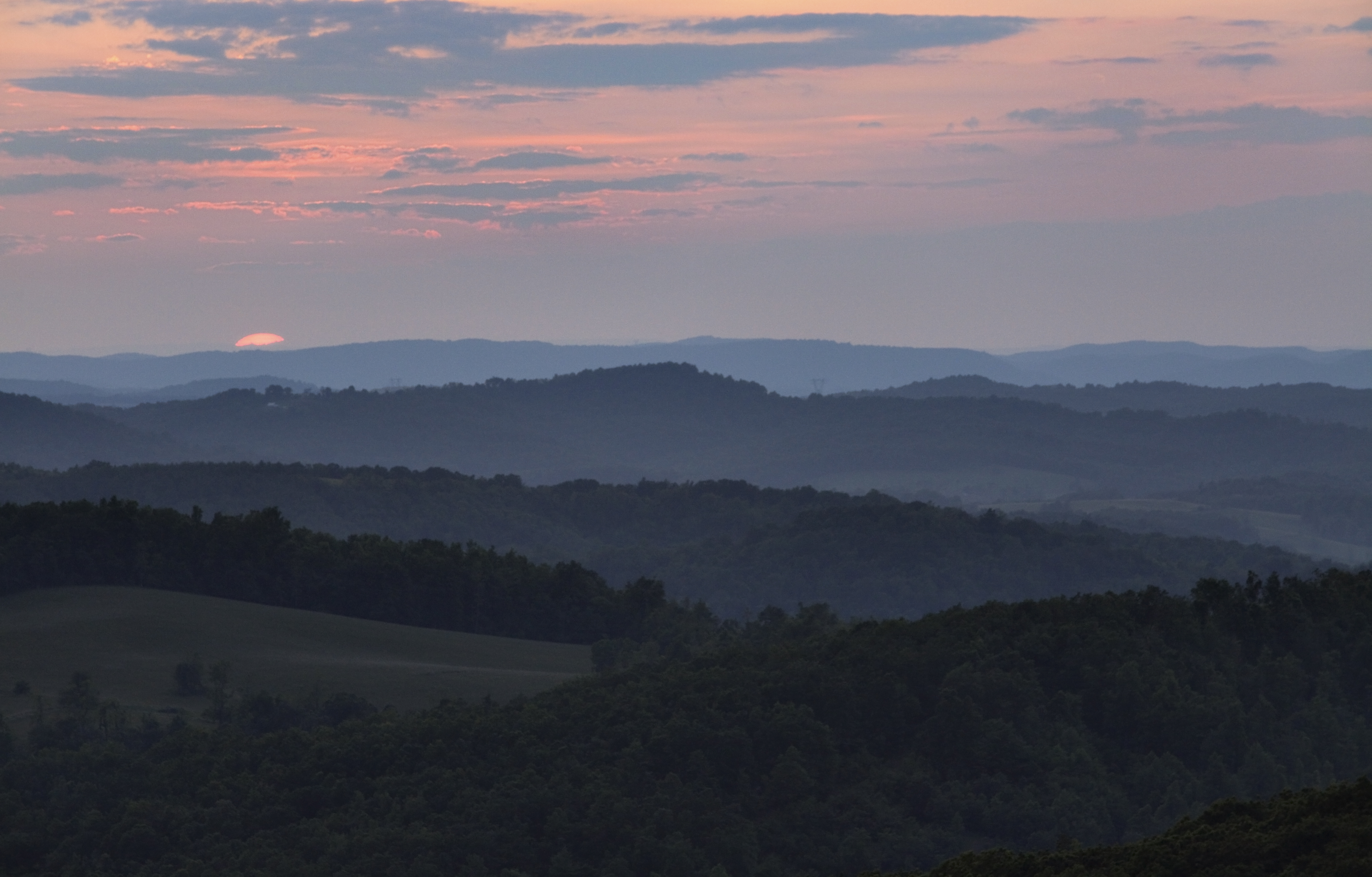 After a couple hours of driving and exploring the section close to Rocky Knob Recreational area, I found a trail that I liked.  The clouds were setup for a dynamic sunset, and so I found a couple vantage points and waited for the moment to take the picture.