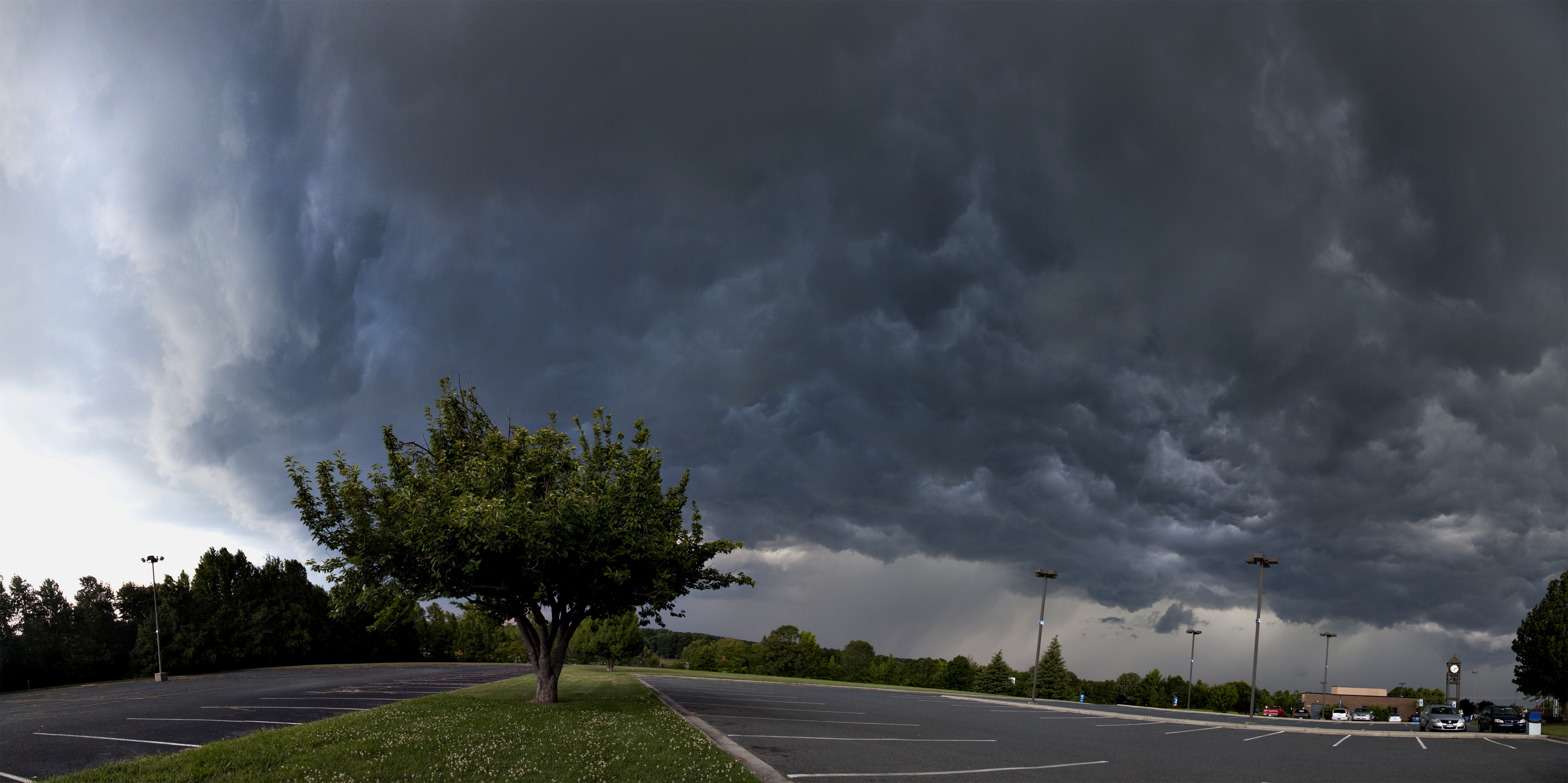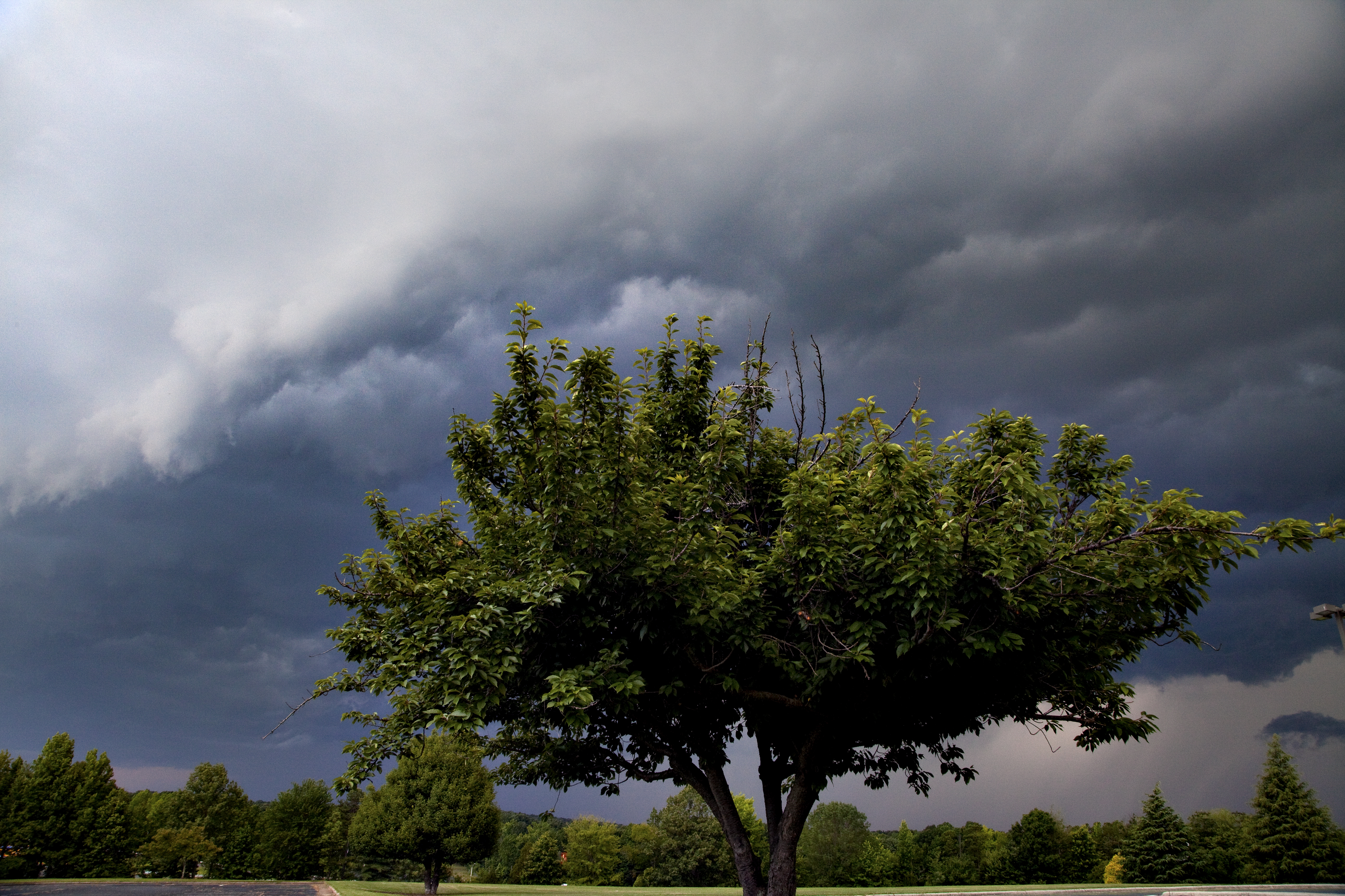 I drove around looking for a perspective and I found a tree that I have always liked. Then I set up and waited for the ominous shelf cloud to come closer. The perspective I chose was one where the storm is actually overhead, but with a 180 degree angle, the front shelf cloud and turbulence underneath can all be seen.