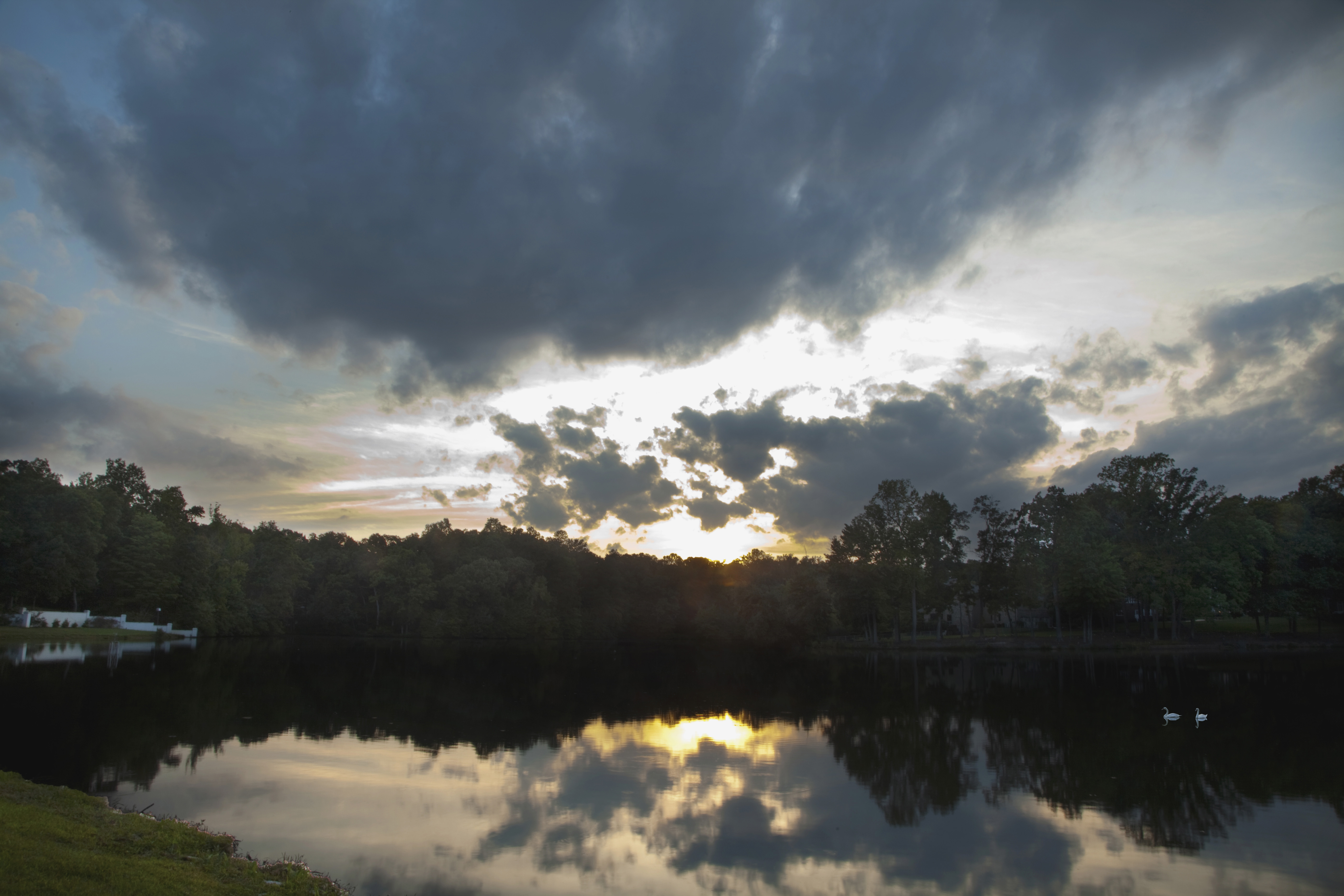 This next photo is from a lake in west Greensboro, NC. I am always looking at the sky when I am outside…or when it close to sunrise or sunset, or when its cloudy. This has been difficult for me during the summer, because it seems the clouds always go away before the sun starts setting. However, weather fronts can come along and put some clouds in the sky no matter what time of day/night. Thats what happened on 9/15/13. A cold front wash pushing in from the west and the clouds were looking great! I noticed they were going to last through sunset so I quickly drove to a lake near my house. I set up the frame and started waiting for the perfect balance of light on the reflection and the sky, and as I was waiting a couple of swans started swimming through the middle of the frame! Lucky timing and great clouds made this experience a lot of fun and I hope to find the swans again but with a 300 mm.