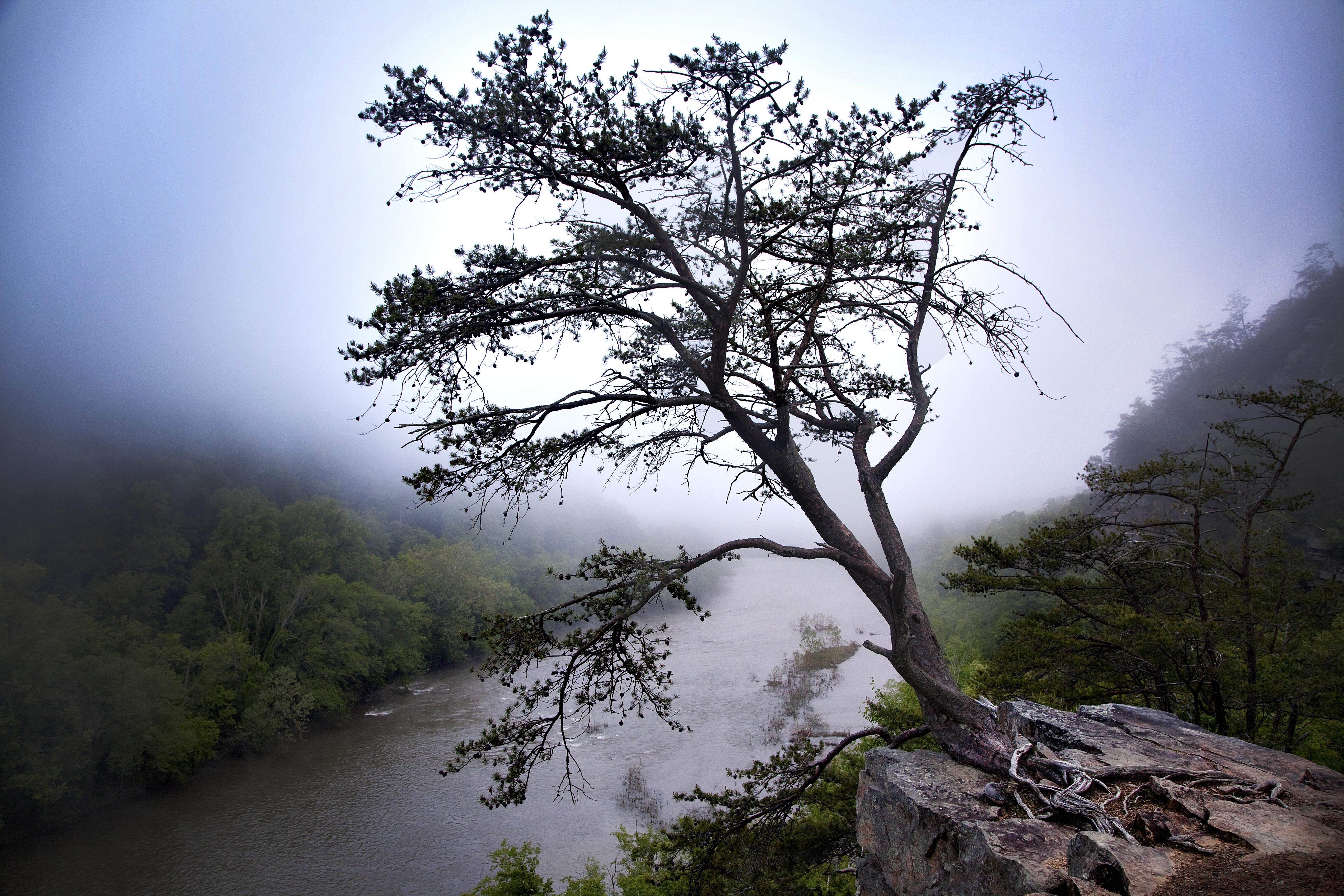 This is a tree sitting on top of a cliff overlooking the French Broad River in NC.