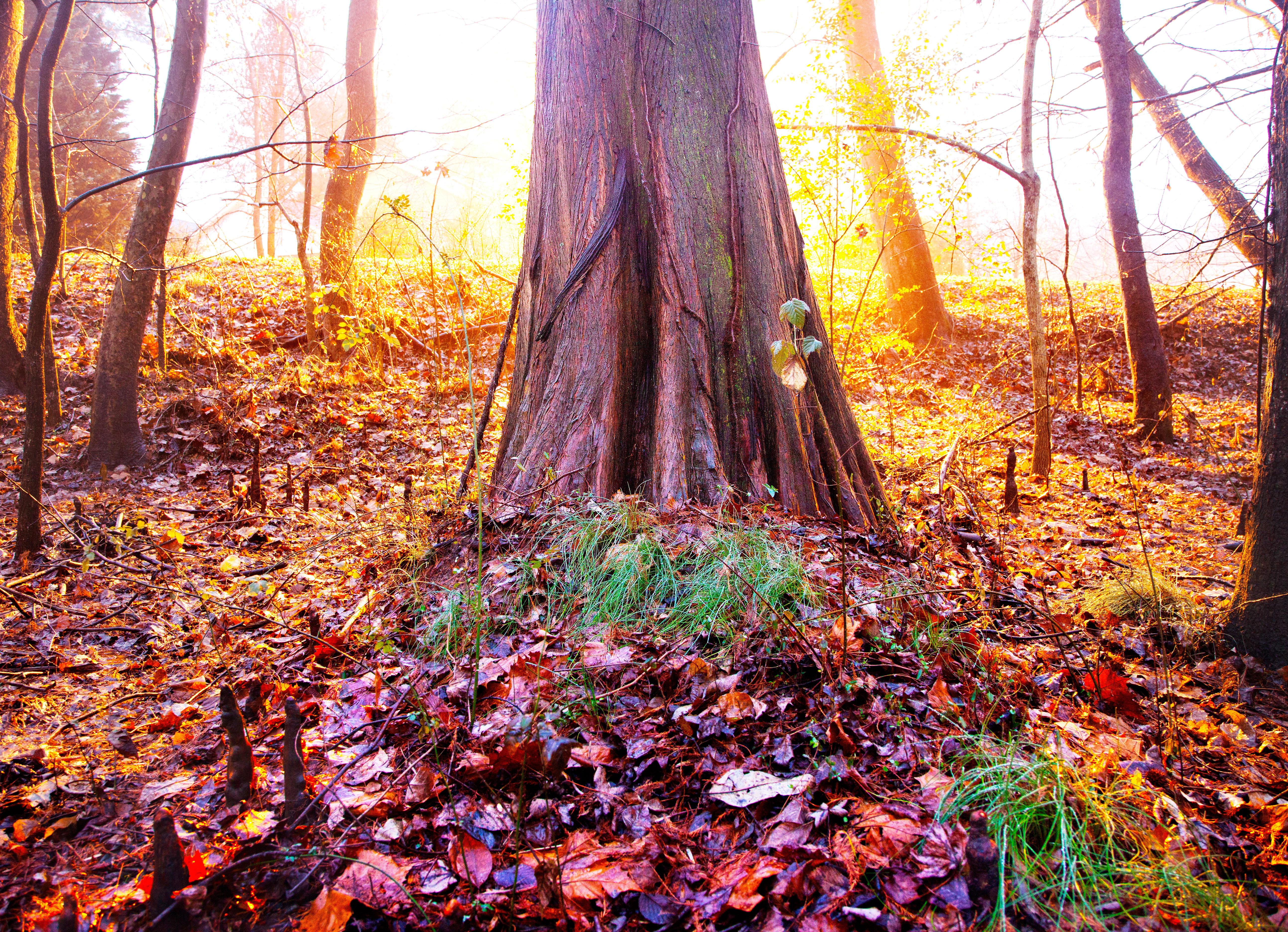 I have spent a lot of time traveling and looking for Bald Cypress trees, one of my favorite trees because of its roots, and the fact they like to grow in water. Usually my search of them has ended me up at the North Carolina coastal areas, but when doing some research and speaking with some park rangers, I was able to find a grouping of Cypress trees that grow beside a stream in the woods in Greensboro, NC (where I live). It was actually located off of a road called ‘Cypress Tree Park rd’…. and there isn’t a Cypress Park, but it was named many years ago after the Cypress trees before Greensboro had developed.