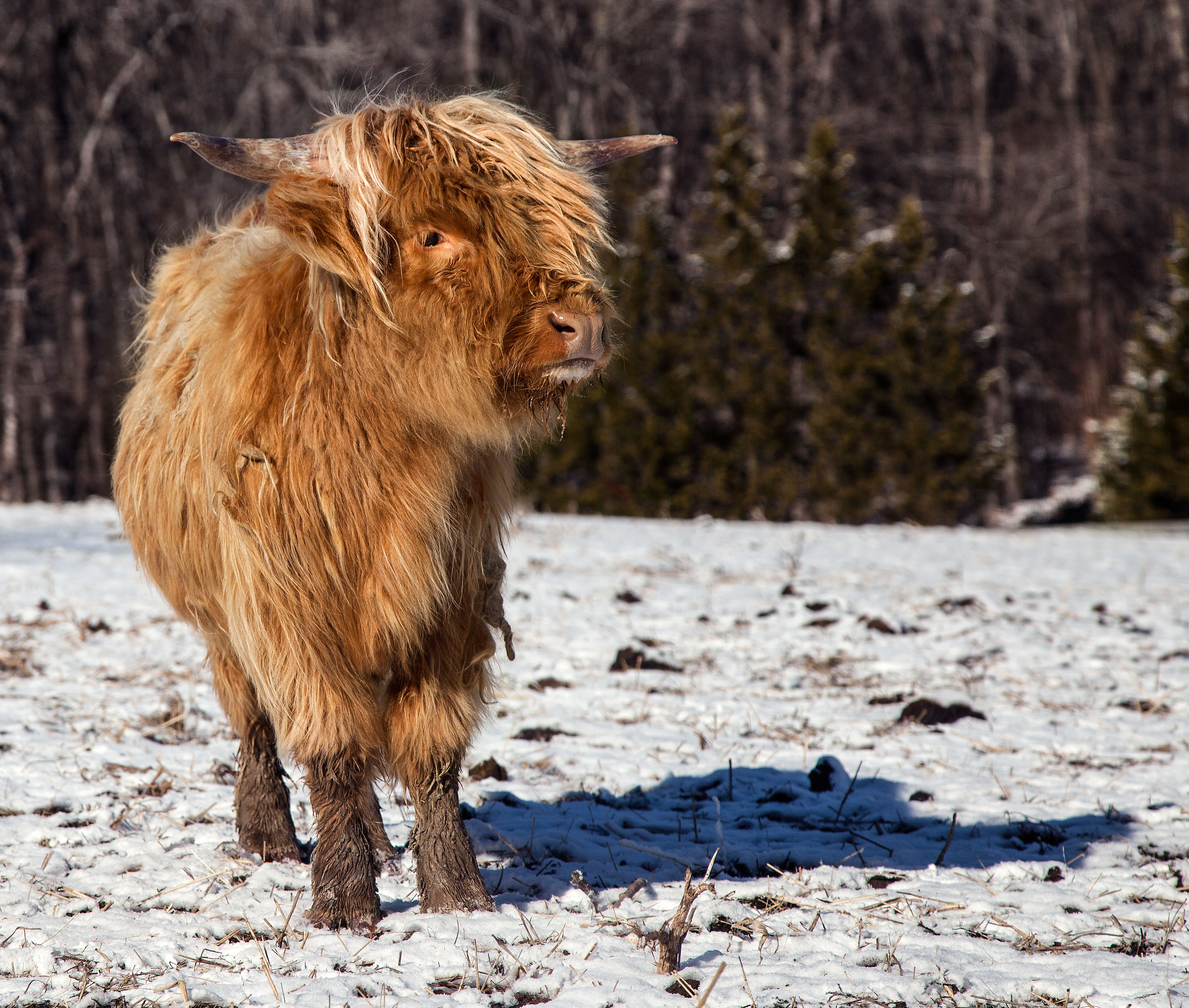 I spent a lot of time trying to photograph cows, but these seemed to have more personality than any I have met. Instead of just standing still and eating grass, they walked over to me (about 5 feet away), and allowed me to take pictures while they played and stood in the snow.