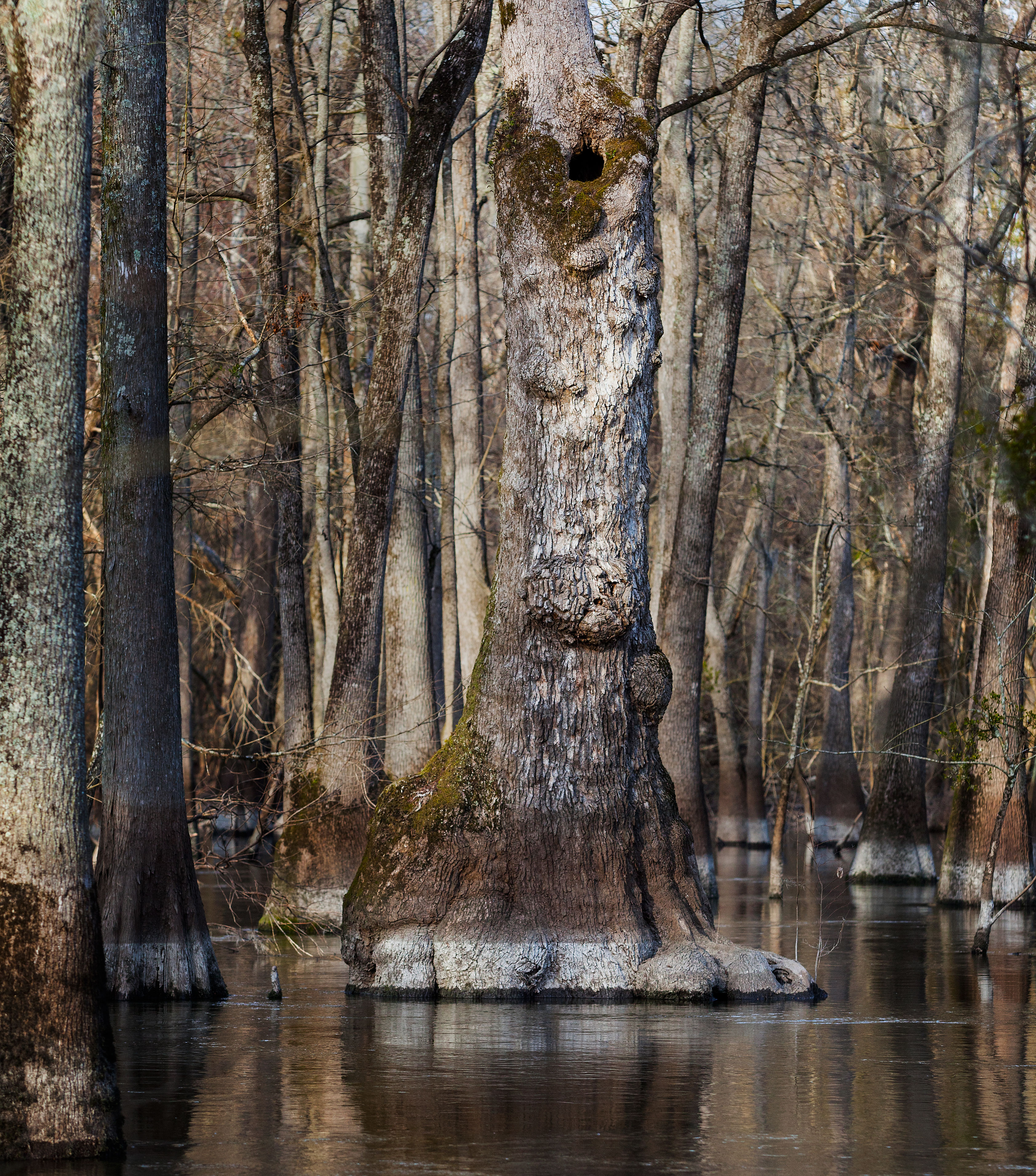 So I decided to revisit this place and spend some time photographing it. These huge, amazing water trees grow in such odd and beautiful ways! Having no kayak on me at the time, I jumped across pieces of land looking for the right trees to photograph.