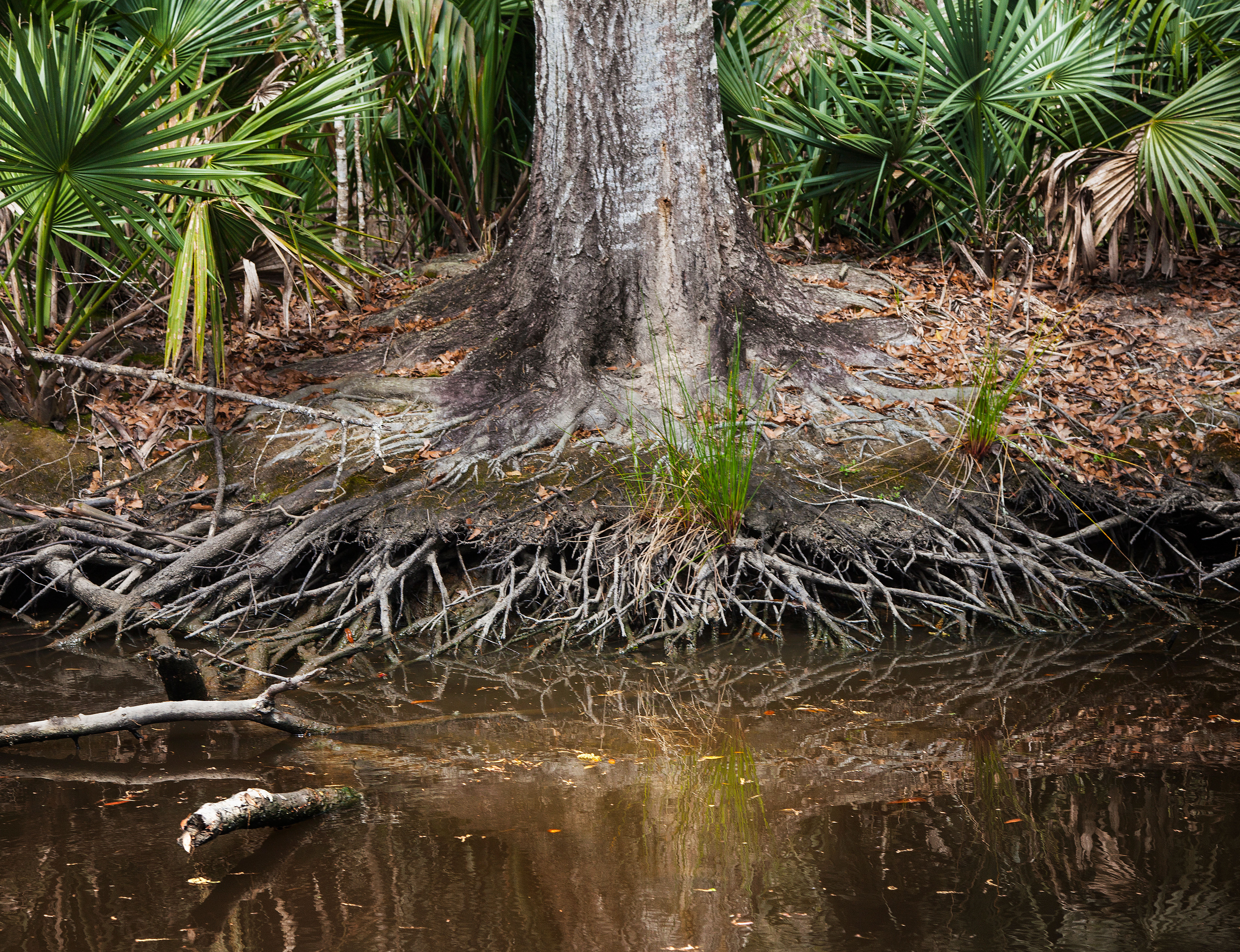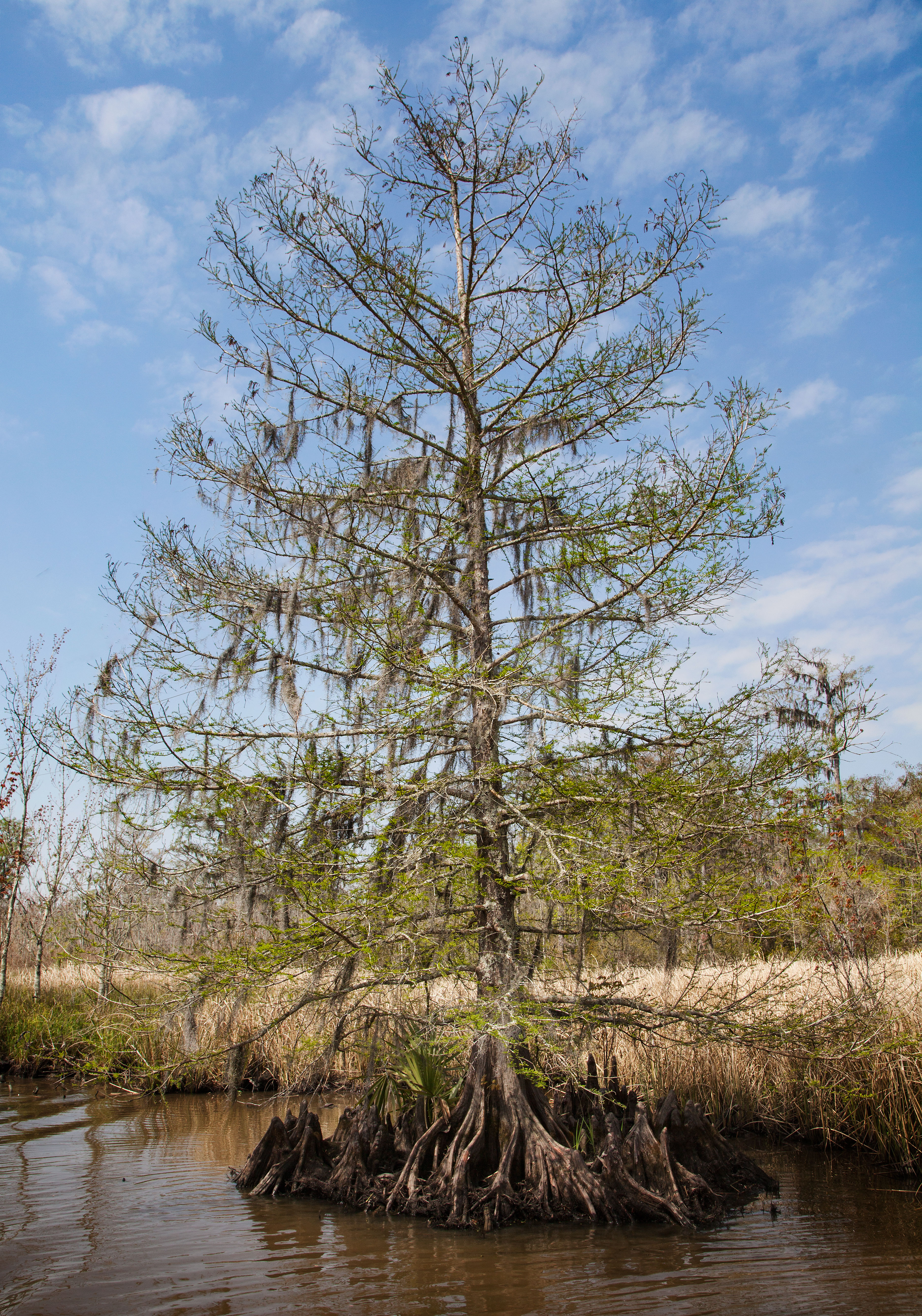 A beautiful Cypress tree with beautiful roots surrounding it, often called Cypress ‘knees’.