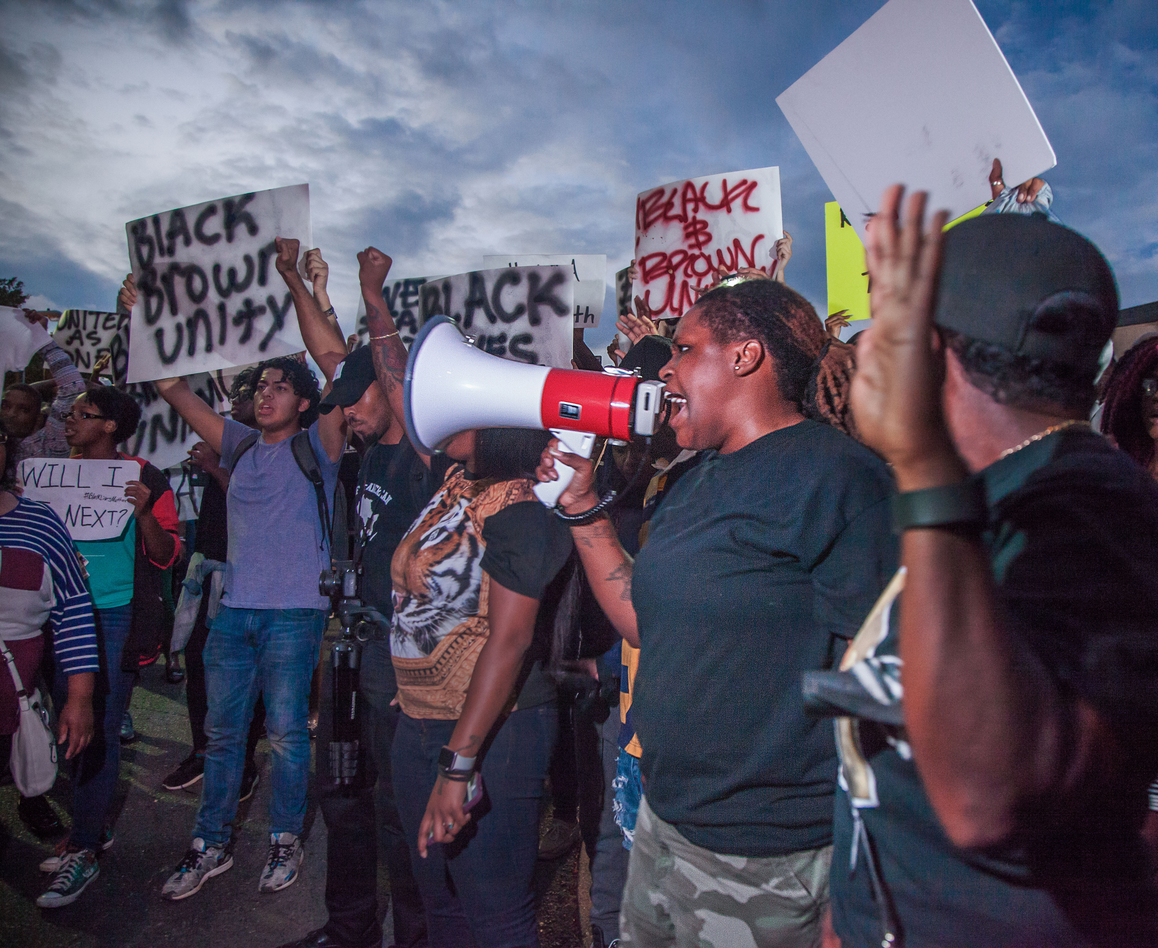 Beginning of the protest in front of the church first stopped at. Encouraging and peaceful words were delivered to the crowd. Uptown Charlotte, NC 9/21/16