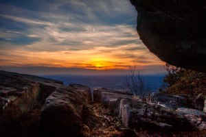 Pilot Mountain Sunset Posted on November 11, 2016November 11, 2016 by Exploring NC Sunset looking west toward the Blue Ridge Mountains from Little Pinnacle on Pilot Mountain. From Late October 2016