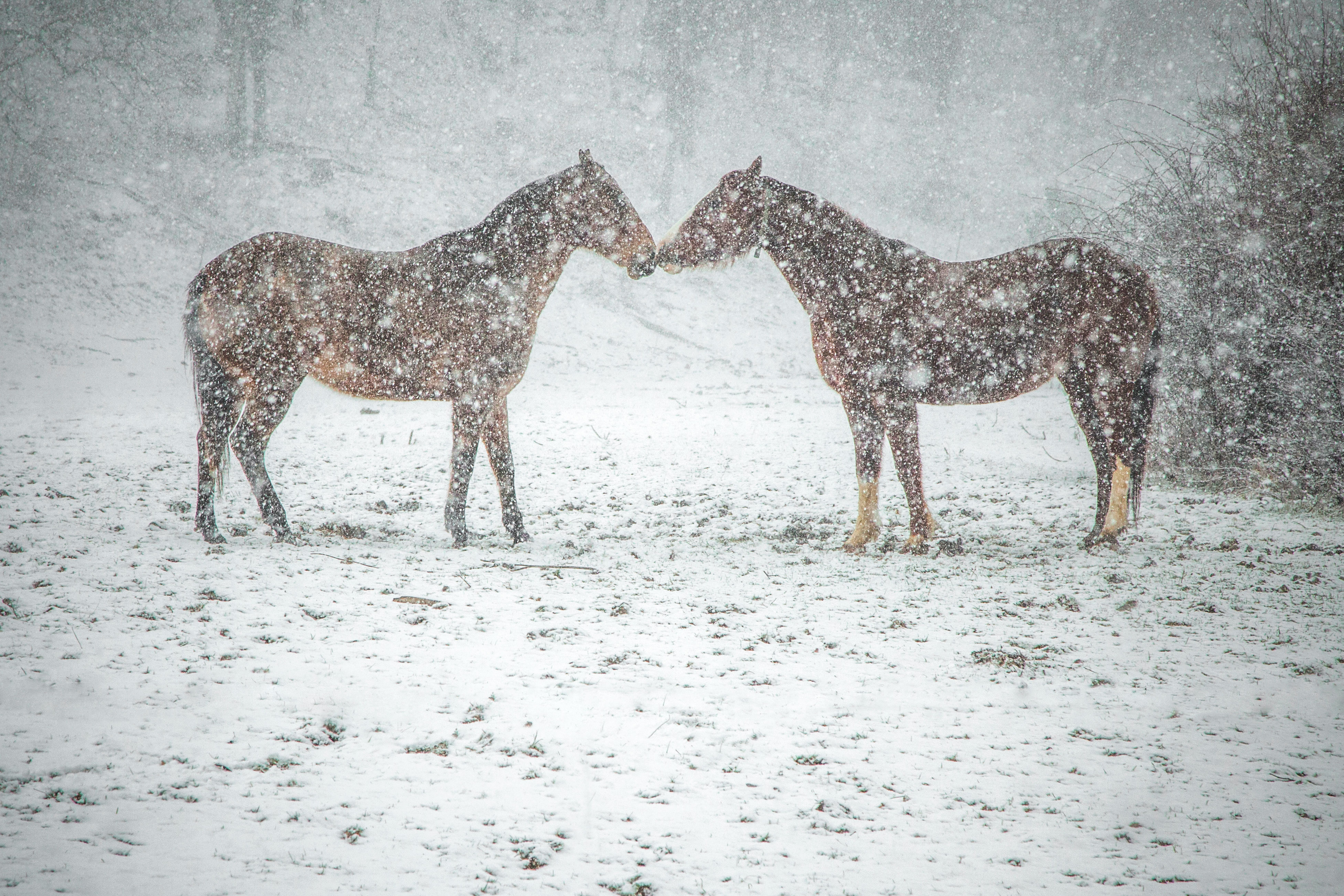 Horsin’ Around Posted on December 5, 2016December 5, 2016 by Exploring NC Horses rub noses while taking a break from playing during the heavy snow in Boone. 2016.