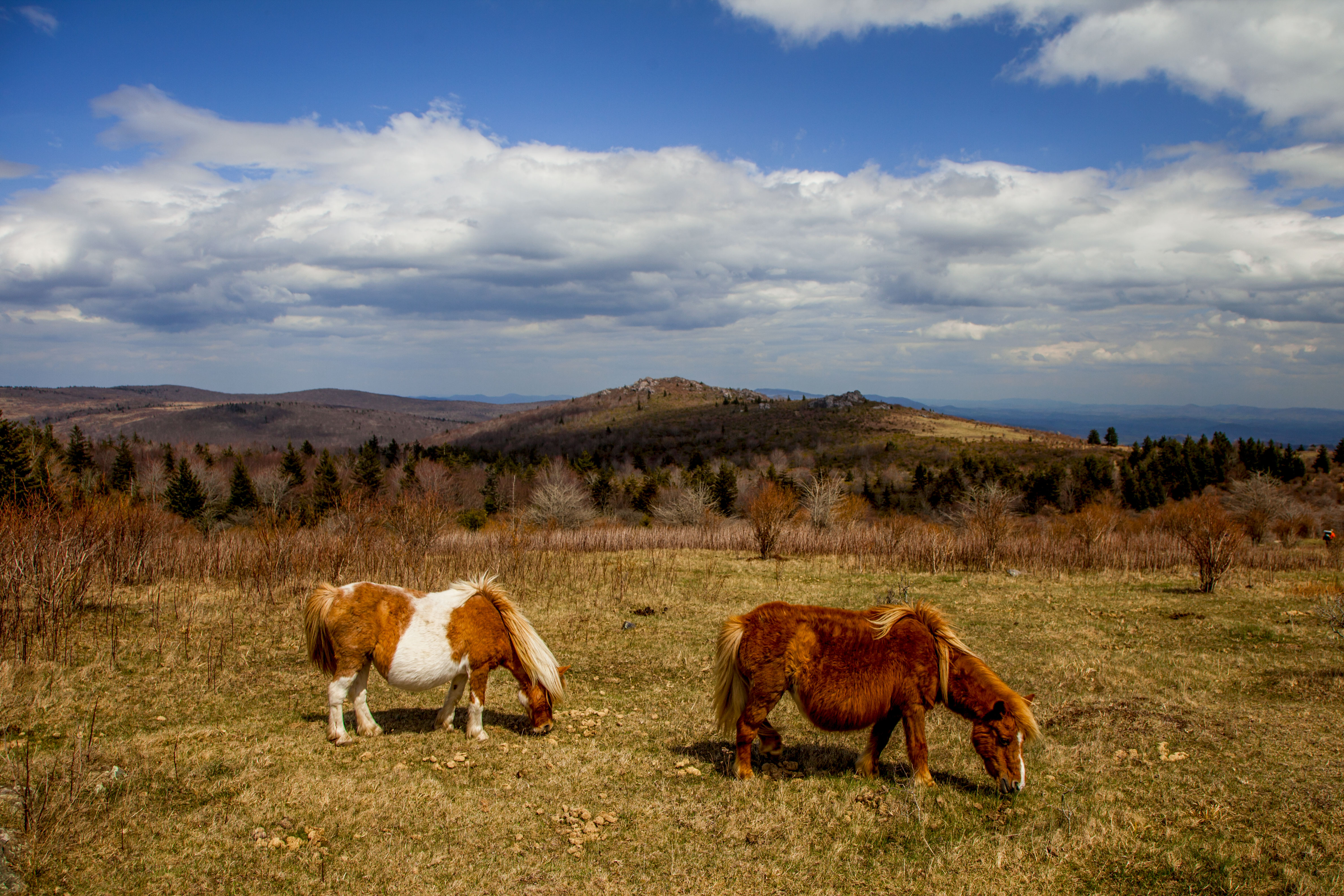 Pregnant Ponies at Grayson Highland Overlook Posted on April 30, 2017April 30, 2017 by Exploring NC A couple of pregnant ponies at an overlook off of Rhododendron Trail at Grayson Highlands State Park, April 2017