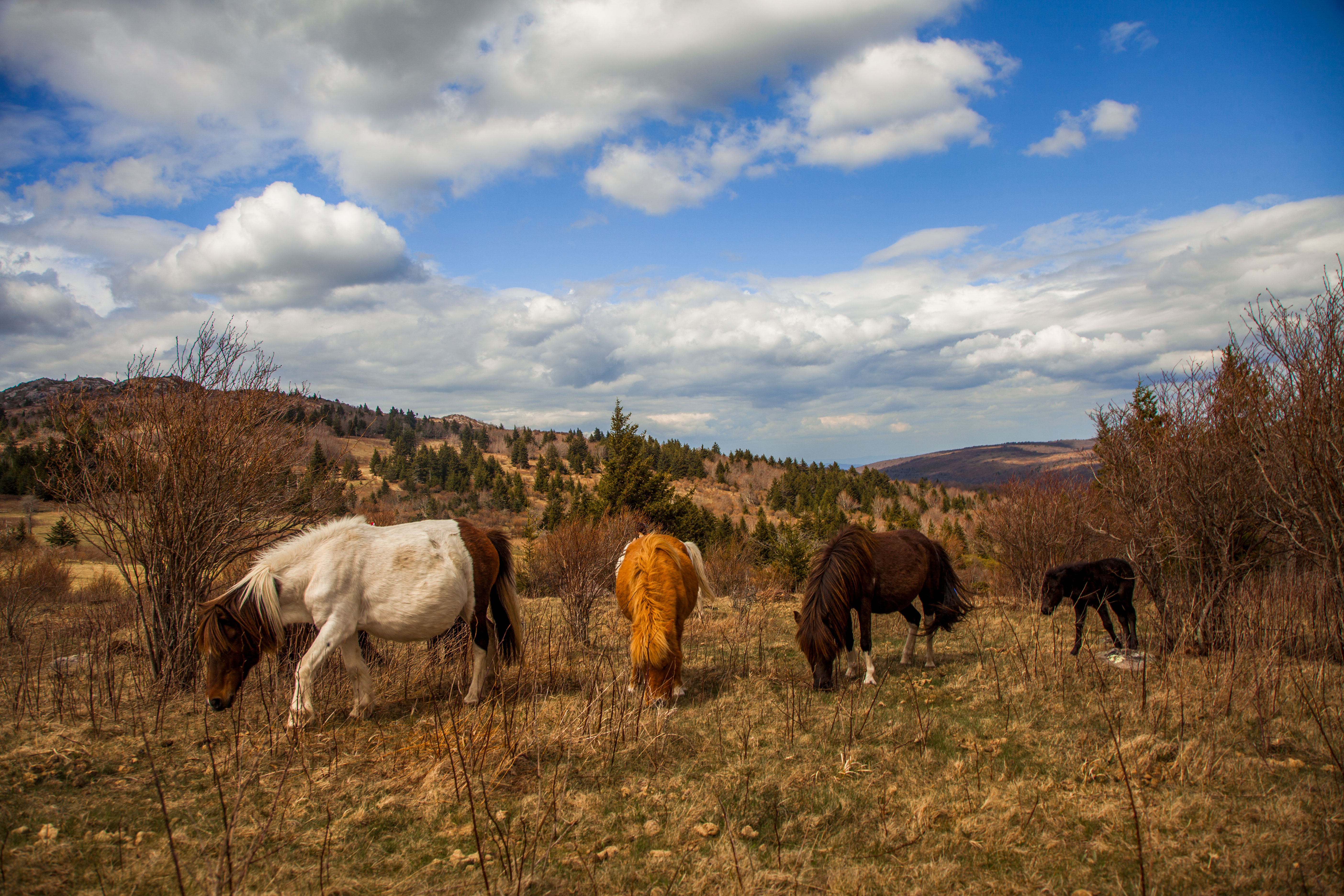 Grayson Highland Ponies Lineup Posted on April 30, 2017April 30, 2017 by Exploring NC The wild ponies of Grayson Highlands graze on a grassy bald, at Grayson Highlands State Park, April 2017