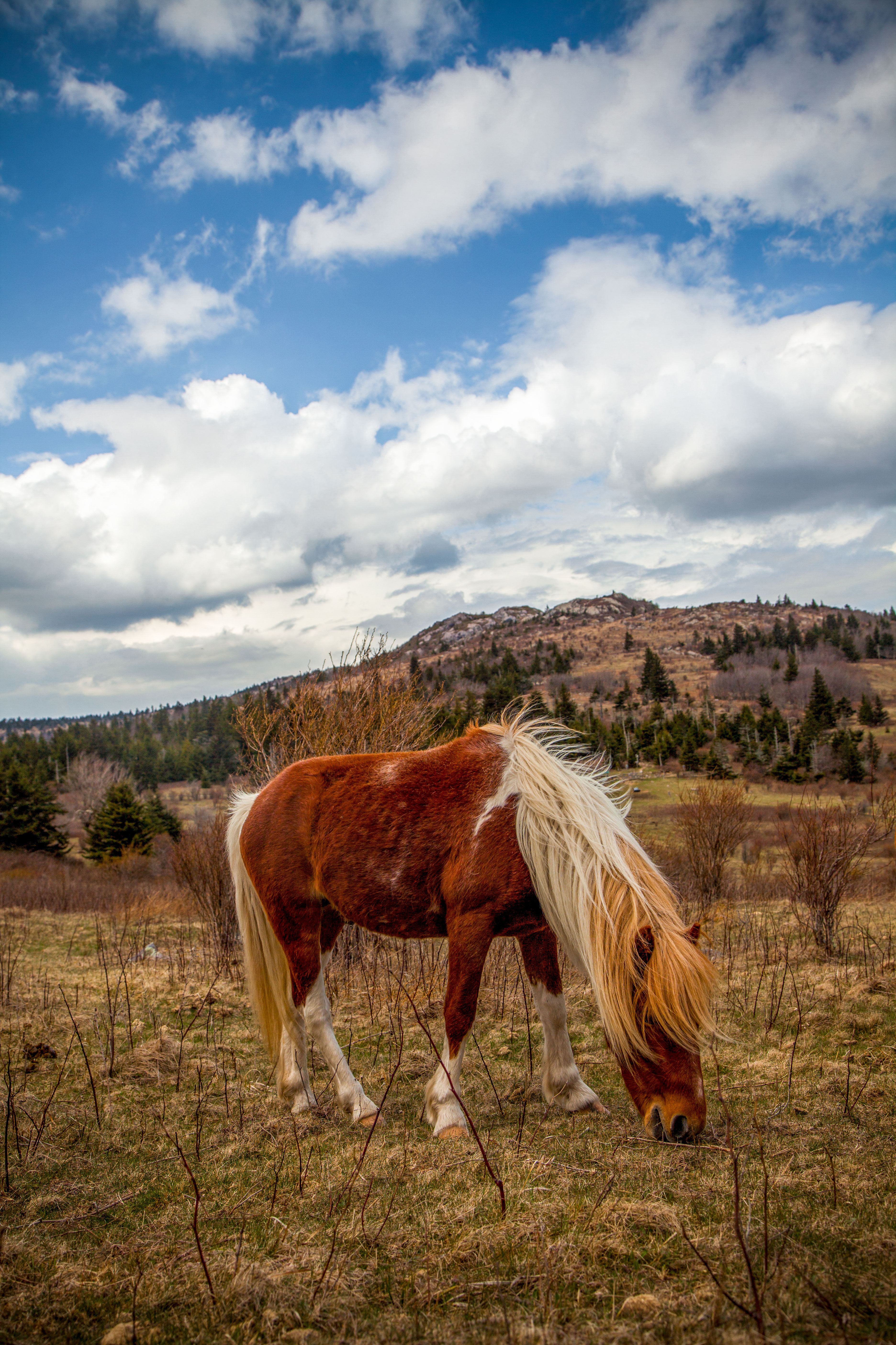 Grayson Highland Pony Posted on April 30, 2017April 30, 2017 by Exploring NC A wild pony of Grayson Highlands enjoys a grassy meal, at Grayson Highlands State Park, April 2017