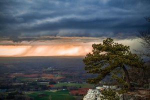 Shelf Cloud at Pilot Mountain Posted on July 2, 2017July 3, 2017 by Exploring NC Sunset-lit severe storm and shelf cloud captured from Pilot Mountain, late March 2017