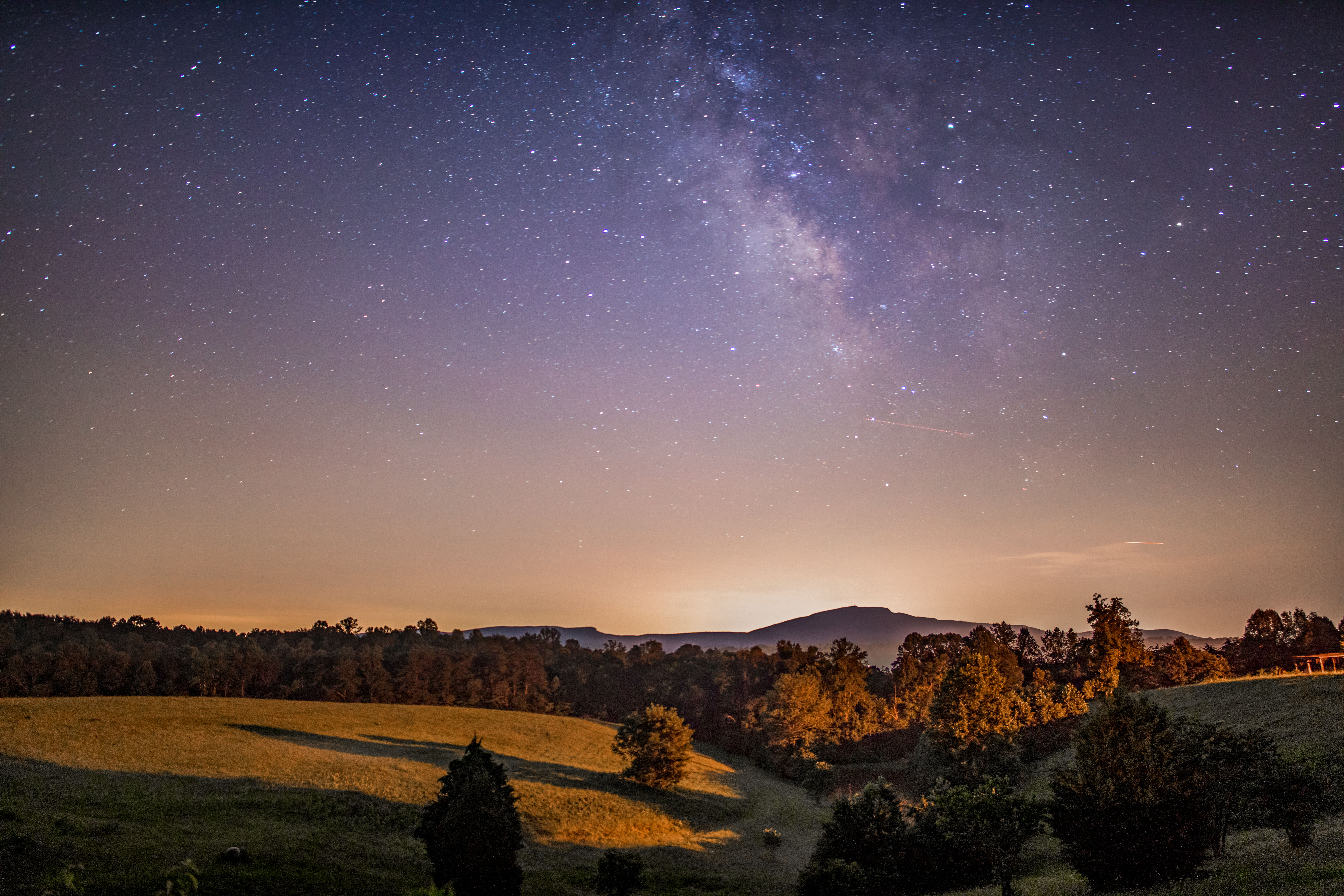 Milky Way over Hanging Rock State park, captured late July. In the image Hanging Rock is the smaller peak to the left and Moore’s Knob is to the right