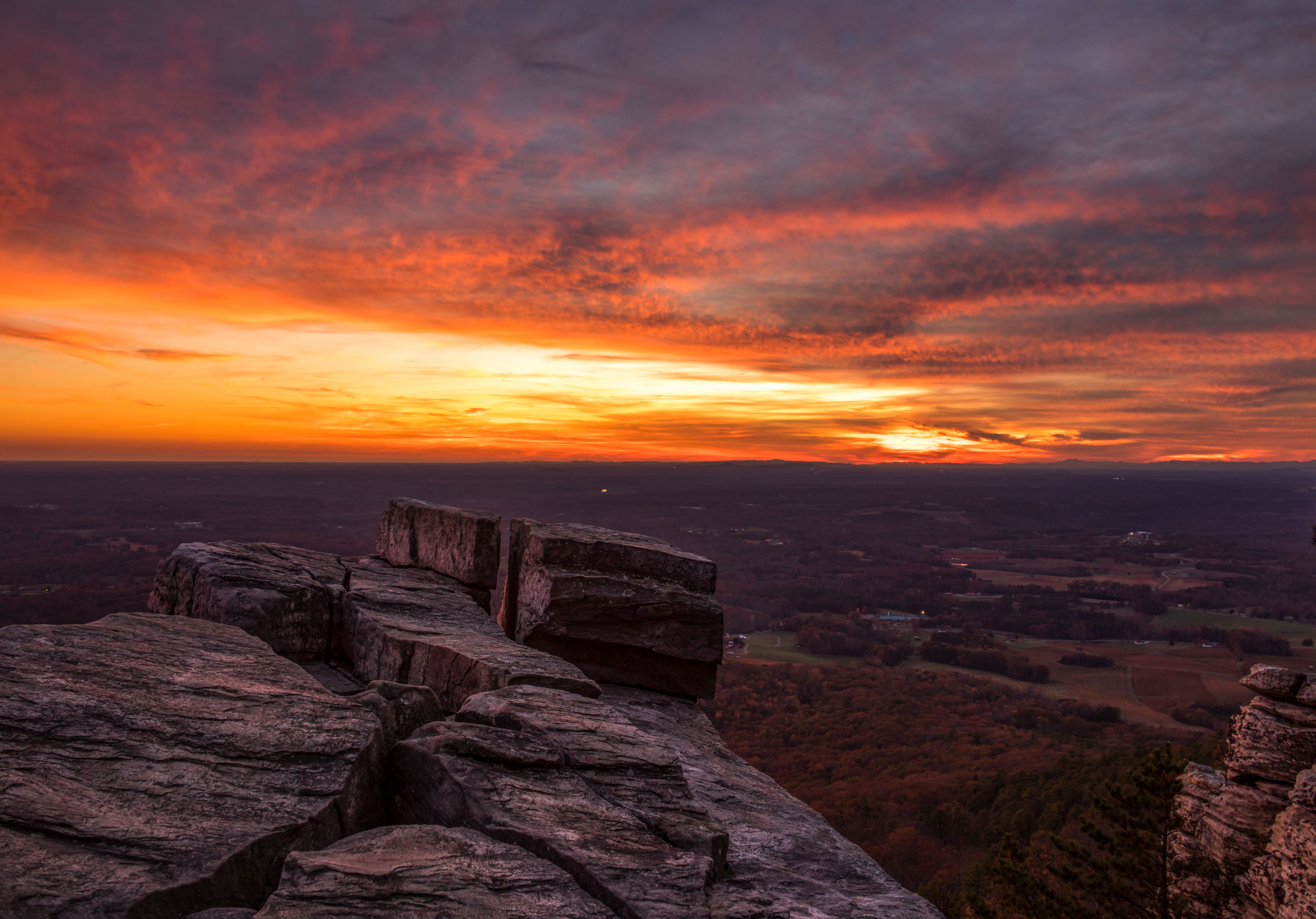 Pilot Mountain Sunset Posted on December 7, 2017December 7, 2017 by Exploring NC Sunset along the cliffs of Little Pinnacle at Pilot Mountain in NC. Captured March 12, 2017.