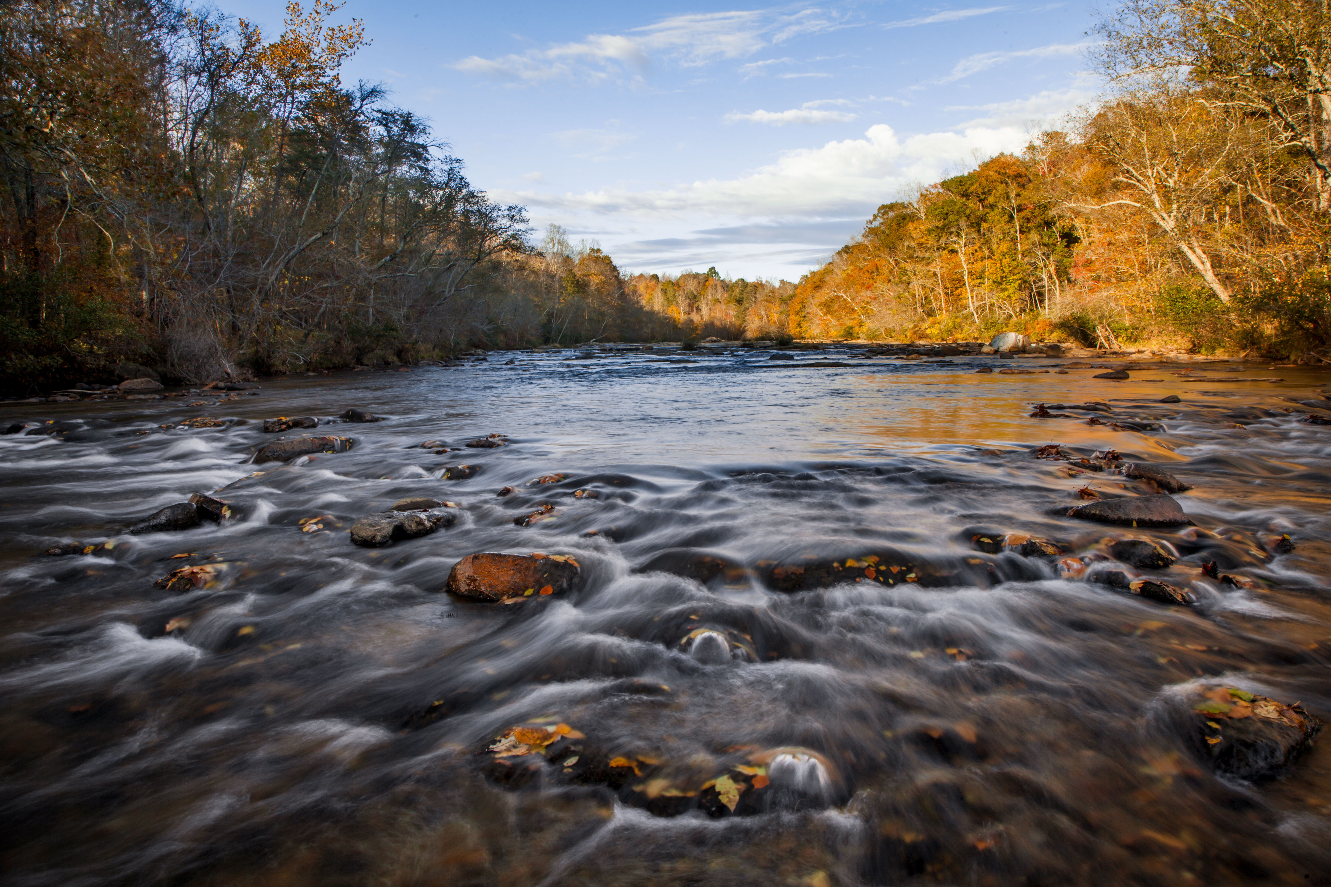 Peak fall colors along the Mayo River, in northern NC. Captured early November, 2017, afternoon near the northern public canoe access.