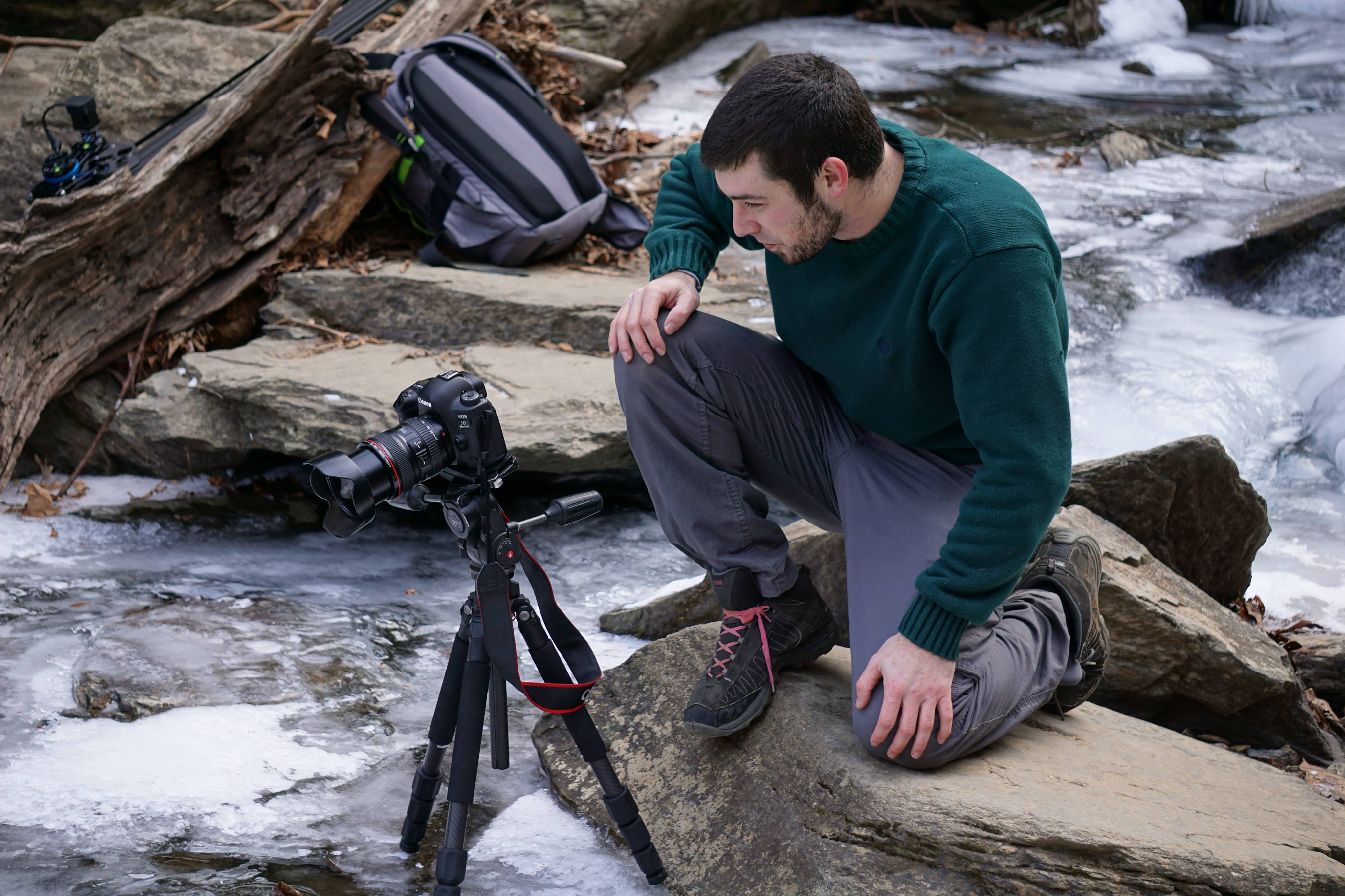 Behind the scenes of me (Dan Whittaker) capturing a time-lapse of frozen Catawba River in North Carolina. Photo by Patrick Cumby.