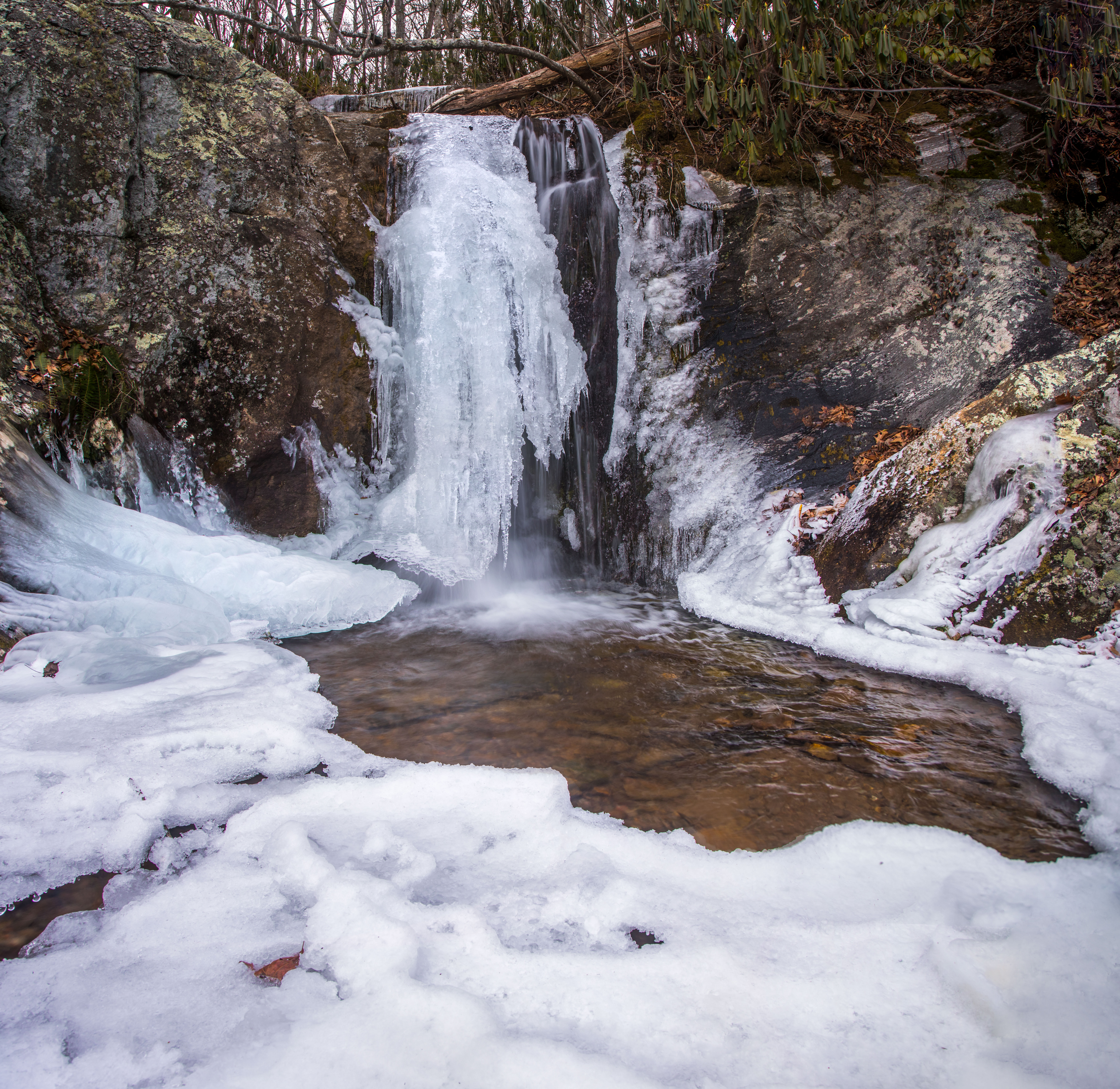 Toms creek cascade Posted on January 10, 2018January 11, 2018 by Exploring NC Frozen cascade above Toms Creek Falls, part of the Pisgah National Forest in North Carolina.