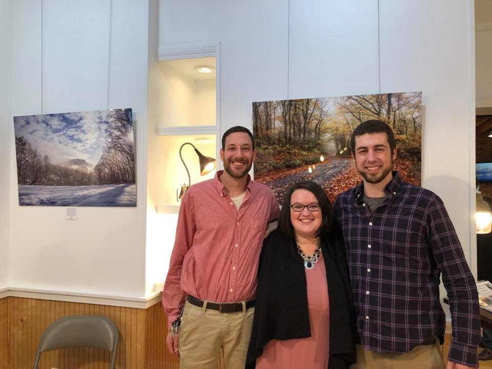 Dan Whittaker and gallery visitors Brittani Watkins and Larry Wall at the Apple Gallery, part of the Stokes County Arts Council, in Danbury, NC. January 2018. Photo rights belong to Brittani Watkins.